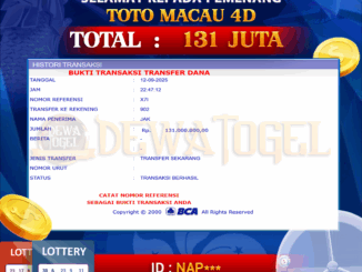 DEWATOGEL JACKPOT TOGEL DI TOTO MACAU 4D Rp 131.000.000,- LUNAS