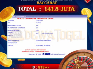DEWATOGEL JACKPOT LIVE CASINO DI BACCARAT Rp 141.500.000,- LUNAS